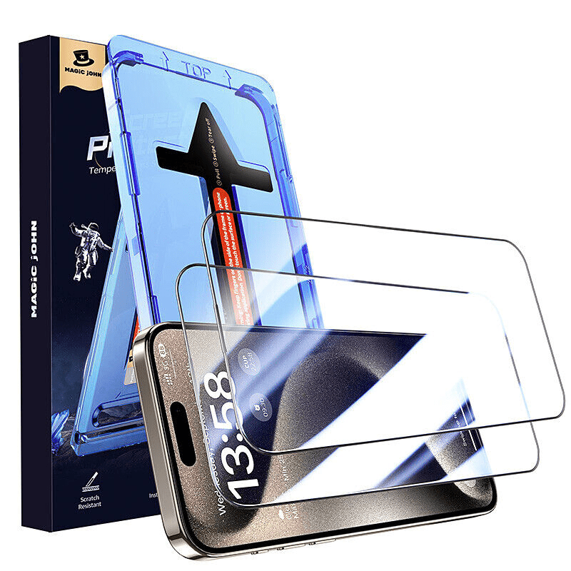 About this item [Automatic Dust Removal Tech] Just cover and pull, the screen protector automatically aligns and takes away the dust. No more worrying about bubbles and dust. Please watch our Dust-Elimination Installation video tutorial before installing. [Speaker Dust Cover] The speaker dust cover has alloy material, waterproof and dust-proof, will not reduce the volume of the speaker. [Anti-Fingerprint] Magic John tempered glass screen protector for iPhone finished with oleophobic coating to against oil residue from åfingerprints from long-term use. [HD Clarity] Ultra-clear glass ensures amazing clarity for viewing experience and Face-ID compatibility.